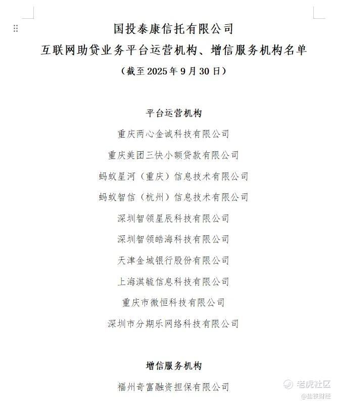 消金公司方面,包括小米消金、平安消金、海尔消金、建信消金等在内的全部31家消金公司也均公布了助贷业务合作白名单。