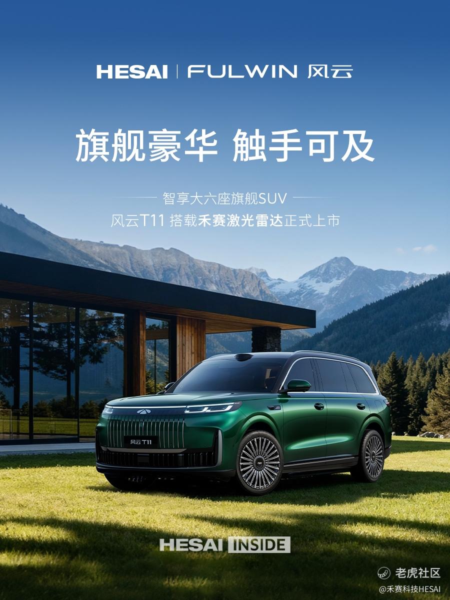 2025 年 10 月 30 日,智享大六座旗舰 SUV 奇瑞风云 T11 全球上市,推出 220 后驱伯牙巨幕奢享版、220 后驱双 IMAX 影院版、220 四驱双 IMAX 影院版、220 四驱全家乐 4 款车型,限时 17.99 万元起,其中 220 四驱全家乐搭载禾赛激光雷达。风云 T11 预售以来,已经锁单 28732 台!