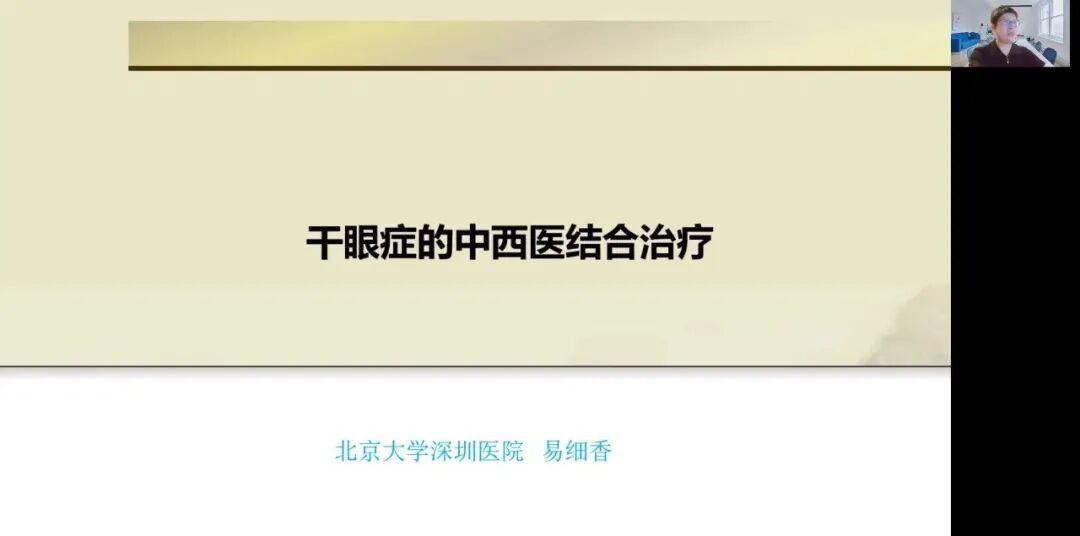 易细香教授就《干眼症的中西医结合治疗》做了主题分享,深入探讨了中西医结合在干眼症治疗中的独特优势。她结合现代医学的诊疗手段与传统中医的理论体系,从个体化治疗的角度出发,提出了针对不同干眼症类型的综合治疗方案。