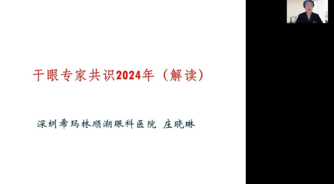10月30日,由深圳市视光学会主办,希玛眼科集团、参天制药公司承办的“干眼多学科诊疗新进展学术研讨会”在线上隆重召开。本次研讨会以“聚焦前沿,共眸睛彩”为主题,汇聚了眼科领域的众多专家。与会专家们从多学科的视角出发,深入探讨了干眼症诊疗的最新进展和临床实践策略,为眼科同仁们呈现了一场内容丰富、视角前沿的学术盛宴。