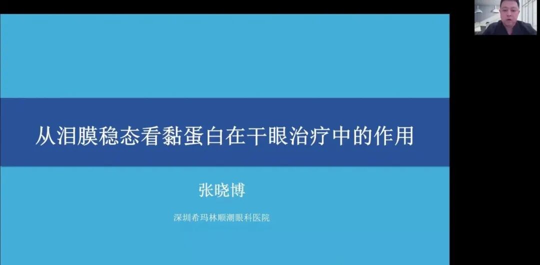 张晓博教授做了《从内膜稳态看黏蛋白在干眼治疗中的作用》的主题分享,深入解析了黏蛋白在泪膜稳定性中的关键作用,并阐述了其对干眼症治疗的深远影响,揭示了黏蛋白在保持泪膜稳定性、防止泪液蒸发以及保护眼表不受外界刺激中的重要功能。