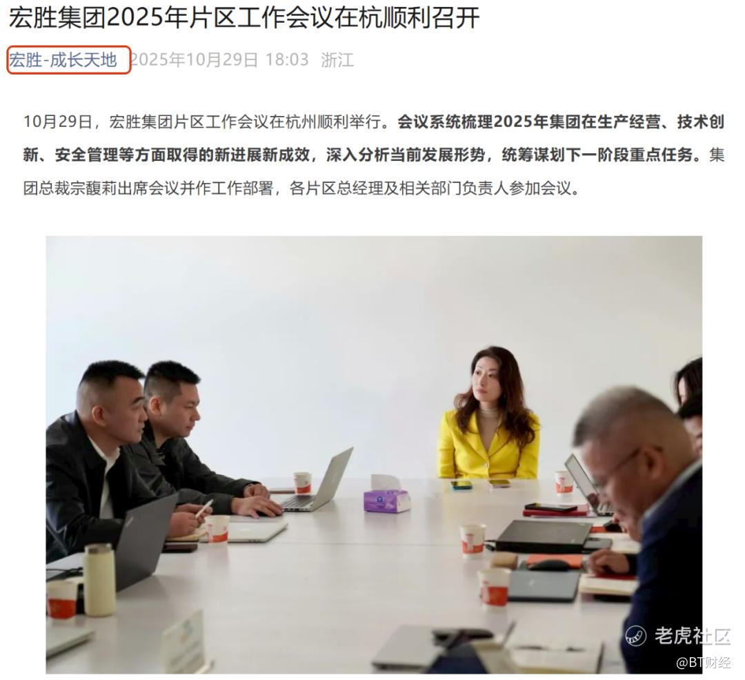 宗馥莉在今年遭遇了辞任又重新掌权,再度离职到再回归等一系列变故。40多天前宗馥莉辞任董事长,据宏胜集团旗下公众号“宏胜-成长天地”10月29日消息文章显示,10月29日,宗馥莉出现在宏胜集团片区工作会议现场。这是她向娃哈哈集团辞去法定代表人、董事、董事长等相关职务后的首次公开亮相,不过这一次,她不再是娃哈哈的掌舵者,而是以宏胜集团总裁的身份主持会议。