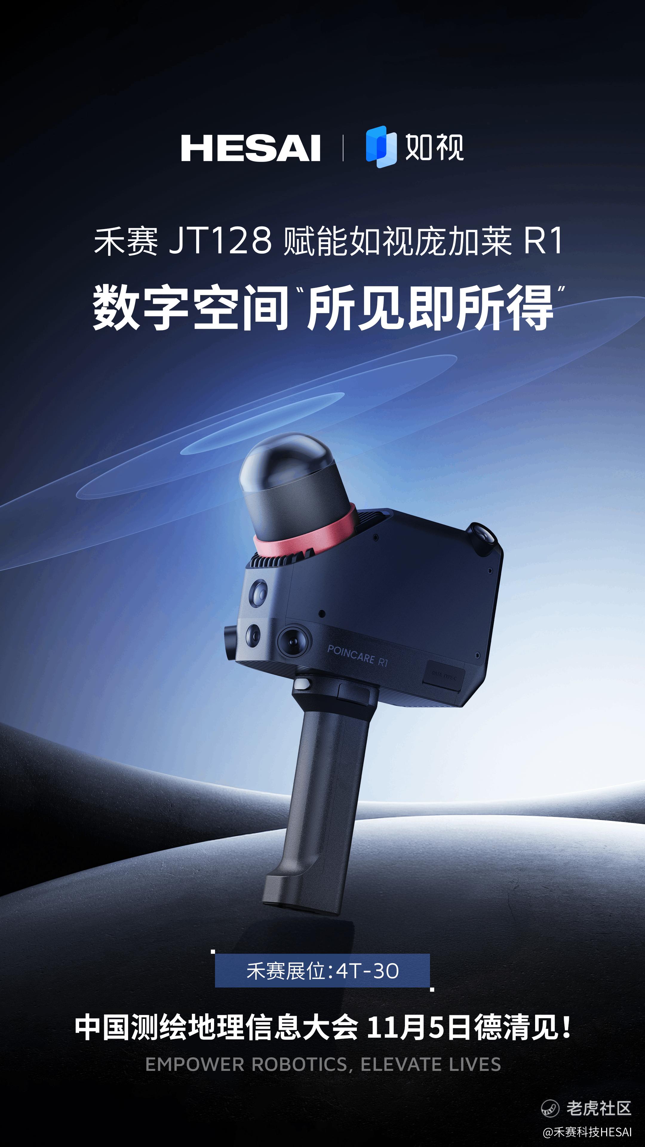2025 年 11 月 4 日,全球领先的激光雷达企业禾赛科技与数字空间综合解决方案引领者如视联合宣布将推出手持实景扫描仪庞加莱 R1。该产品搭载禾赛迷你型超半球 3D 激光雷达 JT128 ,配合强大算法,可适应隧道、广场等极端场景,并保证采集数据的完整性和准确性;全局动态物体去除能力可确保手持实景扫描仪能够在密集动态物体场景下仍能获得干净的点云数据,实现数字空间“所见即所得”。