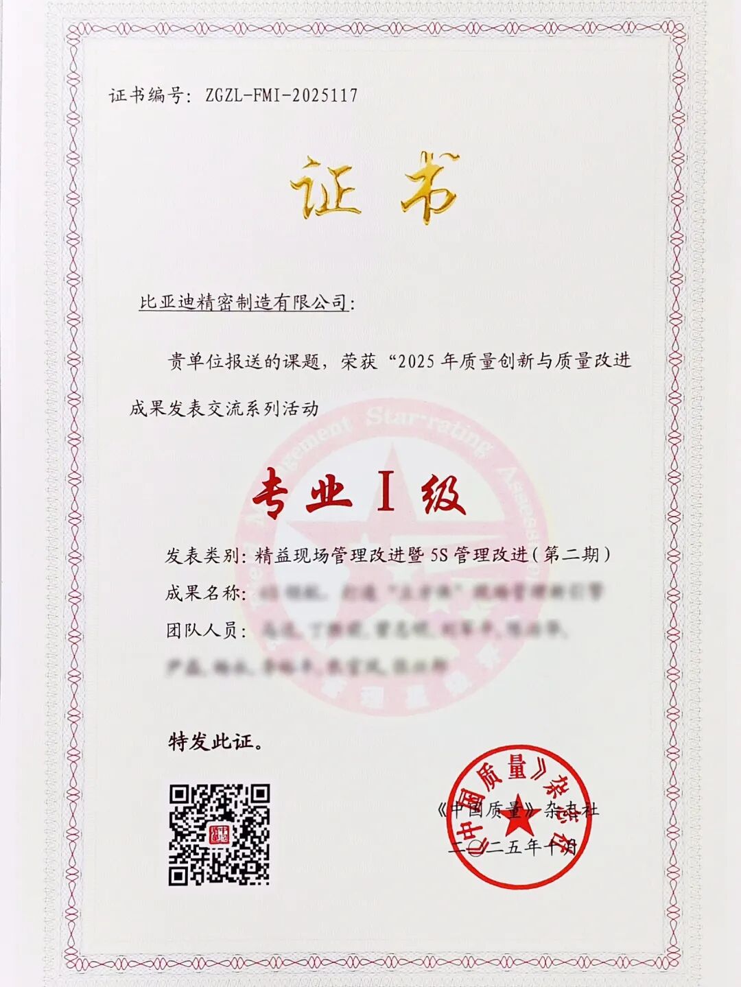 近日,2025年中国质量创新与质量改进成果发表交流系列活动——精益现场管理改进和QC发表会在武汉成功举办。比亚迪电子选送的两支队伍,凭借扎实的实践成果与突出的创新价值脱颖而出,其新颖的发表形式收获评委的高度认可与评价。发表的两个项目分别荣获精益现场管理改进类别"专业Ⅰ级"、QC类别“专业Ⅱ级”两大奖项。