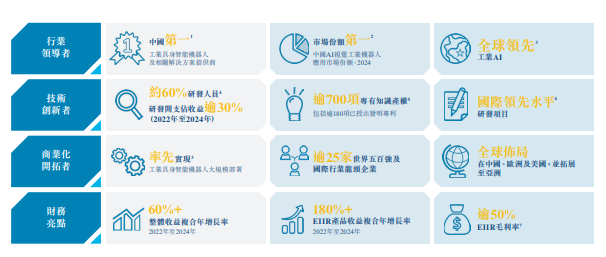 微亿智造,成立于2018年,作为一家领先的工业具身智能机器人公司,主要为全球客户提供开箱即用、高度柔性且具备卓越智能水平的工业具身智能机器人(EIIR)产品及解决方案。公司作为多场景、多行业工业具身智能机器人应用的先行者,实现了规模商业化及迅速增长,按2024年收入计,公司是中国最大的EIIR供货商。