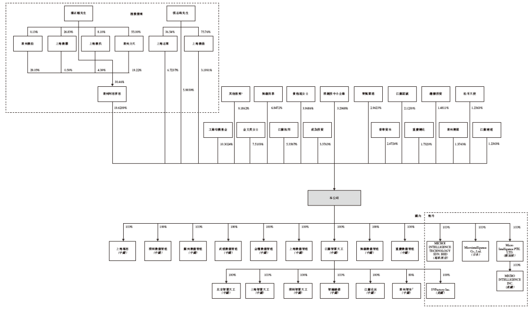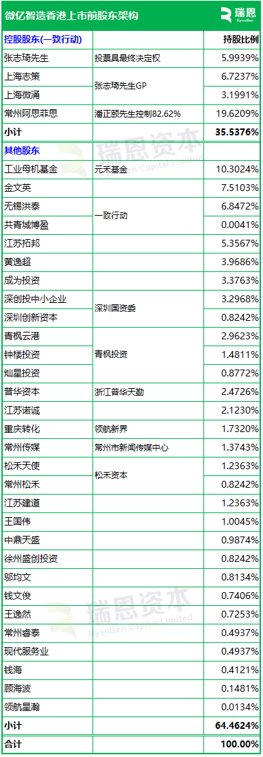 招股书显示,微亿智造在香港上市前的股东架构中,