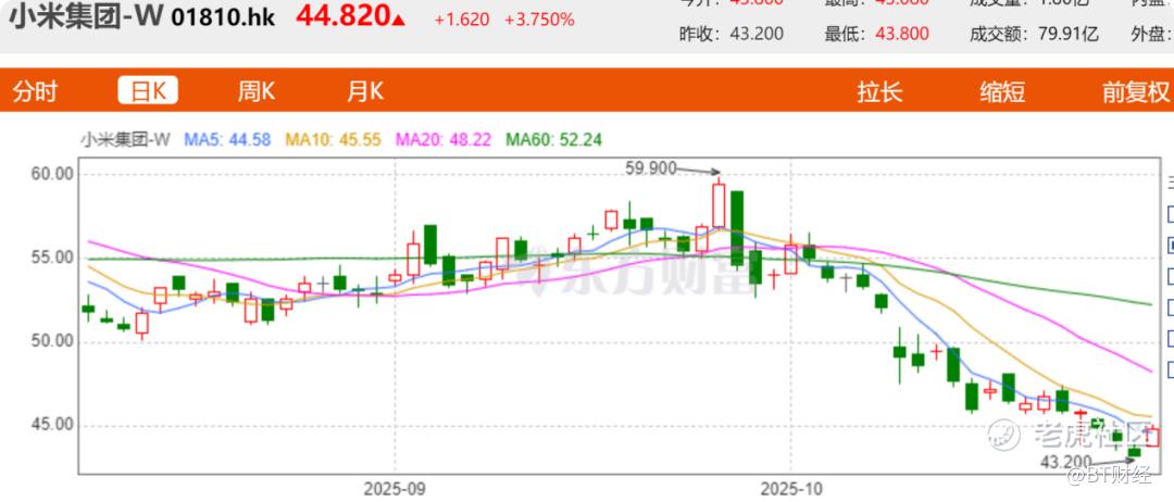 凭借小米汽车的优异表现,小米股价自2024年增长121%之后,进入2025年的小米股价也持续飙升,若不是近期小米遭受较大负面舆情,影响了股价,2025年小米股价一度累计涨幅达266%,从年初的12港元/股飙升至44港元/股。2025年第二季度财报发布后,股价一度创下52.4港元/股的历史新高。