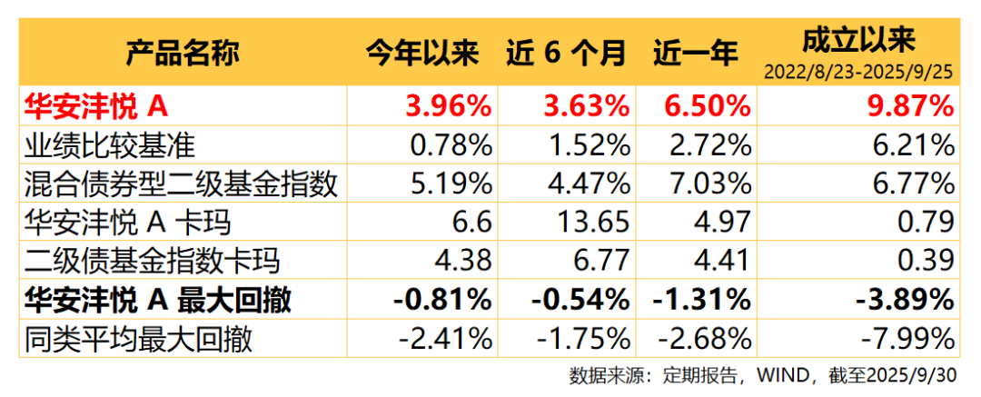 华安沣悦成立于2022年8月23日,股票资产仓位中枢常年在8%-10%,在二级债基中,风险敞口偏低,属于典型的低波“固收+”。