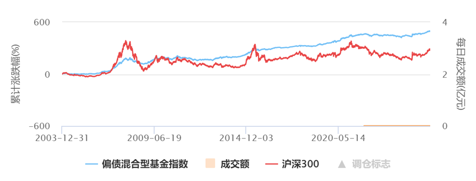 以偏债混合型基金指数为例,在股债搭配的策略之下,相比沪深300指数,偏债混合型基金虽然弹性不高,但长期来看,波动更低,回撤更小,更符合追求稳健的资金偏好。