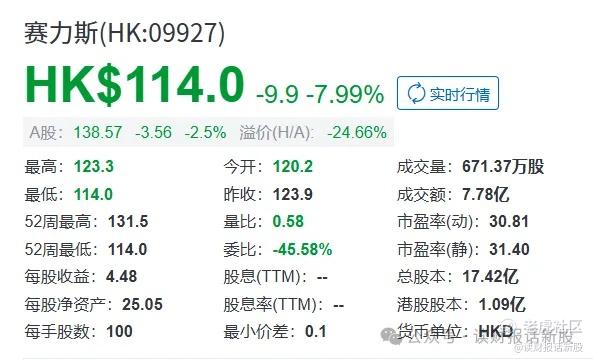 A股赛力斯下跌2.5%,你H股赛力斯敢大跌8个点?