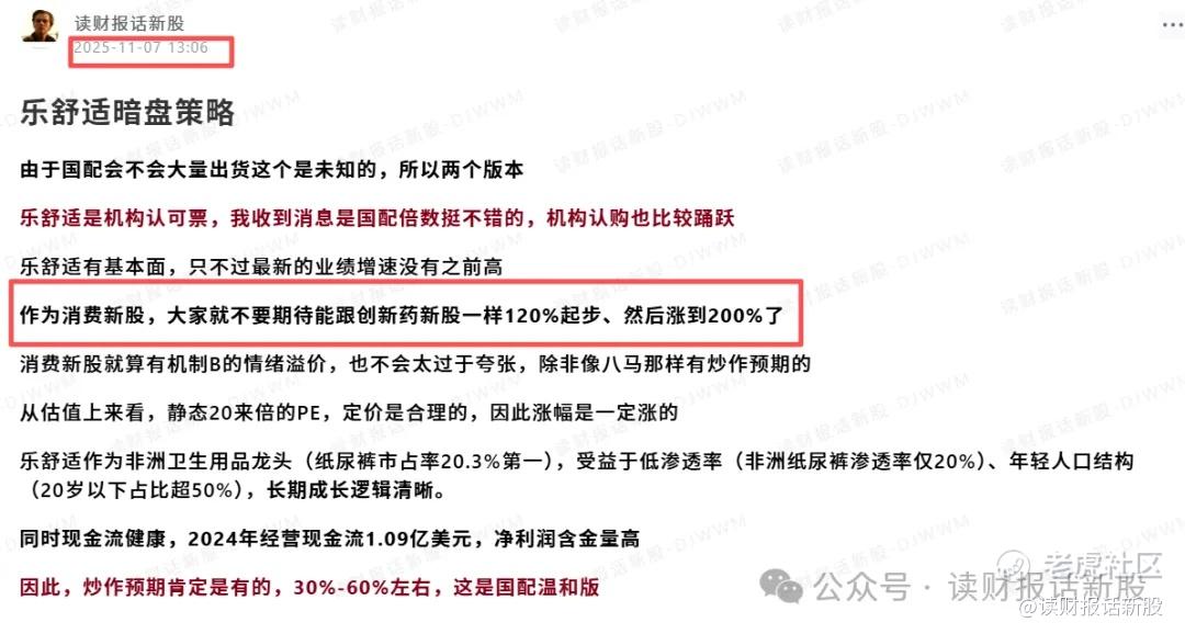 在打新私蜜圈的《乐舒适暗盘策略》中,财哥就提出: