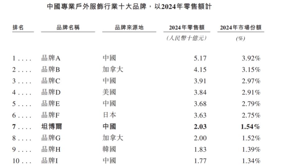 10月9日,坦博尔集团股份有限公司(简称“坦博尔”)正式向港交所递交招股说明书,拟在主板挂牌上市。坦博尔的历史可追溯至2004年,由王丽莉女士家族创立,经过二十多年的发展,坦博尔已成为中国领先的专业户外服饰品牌。招股说明书显示,按2024年零售额计,坦博尔是中国第四大本土专业户外服饰品牌。