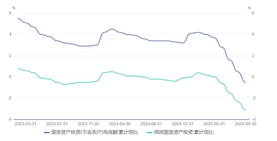 2025年固定资产投资(不含农户)及民间固定资产投资累计同比情况