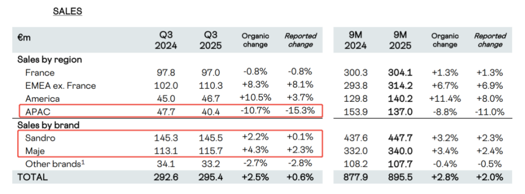 法国时装品牌Sandro、Maje、Claudie Pierlot 和 Fursac 的母公司、法国时尚集团 SMCP 发布2025财年前九个月业绩:销售额同比有机增长2.8%至8.96亿欧元,主要得益于可比增长2.9%。