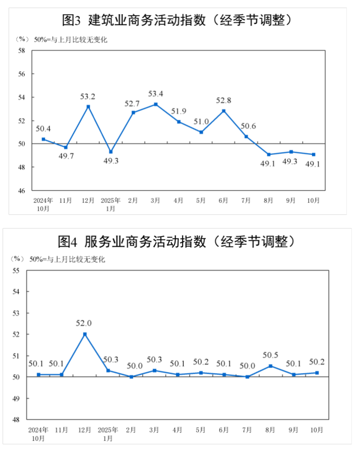 ▶10月份制造业PMI回落至49%,非制造业商务活动指数小幅回升至50.1%