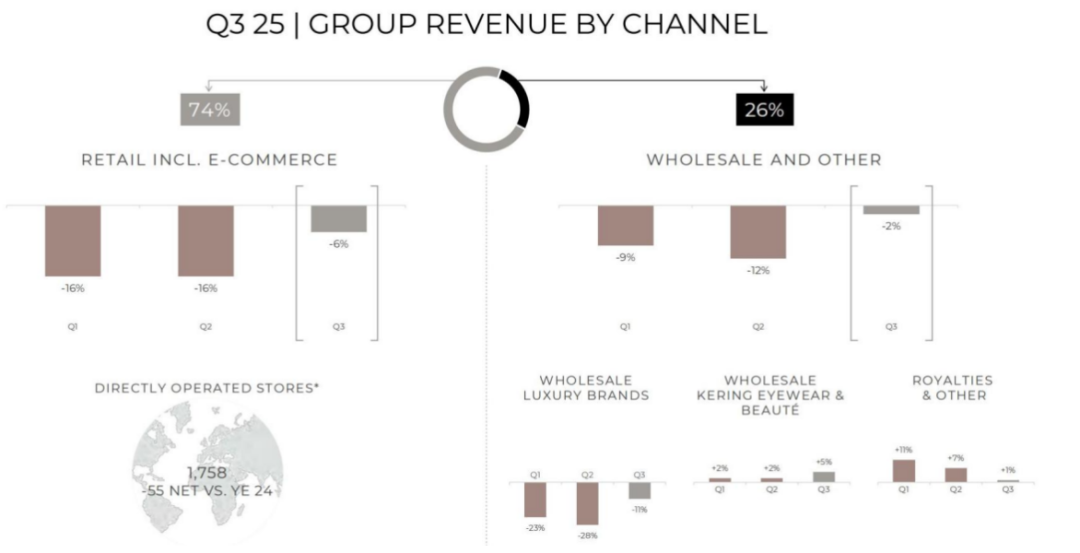 —— 美洲:第三季度相比此前时期进一步改善,单品牌门店表现非常积极,同时在奢侈品百货商店中,成衣仍然是表现最优的品类之一。此外,季中销售在零售和多品牌渠道均高于去年同期水平。冬季系列在新的关税环境下推出;2025 年秋冬系列的增长抵消了关税的影响,同时并未影响销售或客户购买意愿。