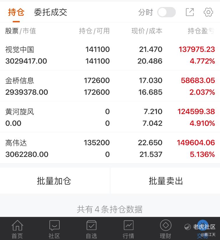 今天是抬指数的行情,盘面大幅不及预期了,个股一度下跌超四千只,好点的是纯情绪的连板表现强势,如果后续没有利空的话,那后面一段时间的市场风格,将继续往连板等方向倾斜,市场不放量,向上空间就比较小,后面继续往低的和新题材方向潜伏,不断往低的去$黄河旋风(600172)$ $视觉中国(000681)$ $金桥信息(603918)$ $四川金顶(600678)$ $高伟达(300465)$
