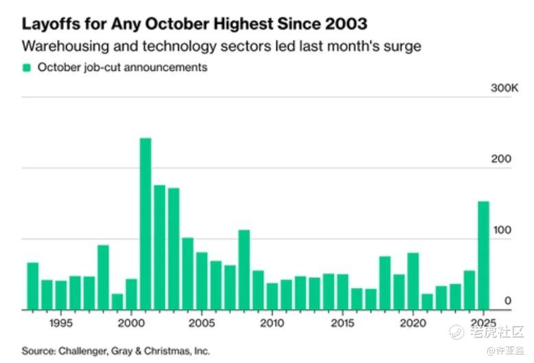 一方面,挑战者企业报告显示,美国企业10月宣布裁员153074人,同比跃升175.3%,创20年来最高水平。