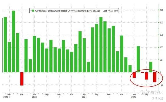 另一方面,根据ADP发布的最新周度报告,截至10月25日的四周内,私营企业平均每周减少11250个工作岗位,这意味着仅10月份的后半段,私营部门就可能流失了约4.5万个工作岗位。这是自2023年3月以来最大的月度就业降幅。