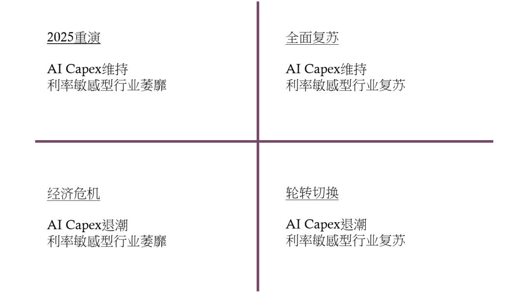 2026年的可能长下面这个样子。因为美国经济现在就是AI投资不错,其他行业比较差