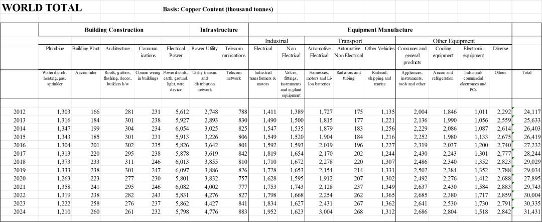 基本上全球的铜需求,都是集中在,房地产,电力,汽车(尤其是新能源车),家电这几个行业。