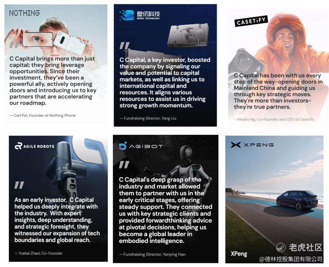 Youngtimers AG是一家在瑞士证券交易所上市的投资公司。2024年11月,YTME完成了对香港企业家郑志刚联合创办的资产管理平台C资本的战略收购。C资本是一家管理资产规模近9亿美元、专注于亚太地区消费及科技领域成长期投资的资产管理平台,其多元化的投资组合包括蔚来汽车、小鹏汽车、小红书、货拉拉、壁仞科技、智元机器人、商汤科技、思灵机器人和Casetify等知名企业。收购完成后,YTME以C资本品牌运营。通过此次收购,YTME转型为连接欧洲与亚洲资本的新型资产管理平台。此次德林控股的进入,则标志着该平台在亚洲的战略链接,从早期的品牌赋能,进入了由德林这类具备全面资管能力的上市金融机构主导的新阶段。