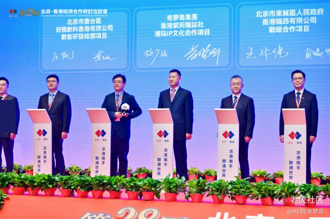 11月12日 - 在第28届京港洽谈会隆重召开之际,中国原创潮玩领军企业奇梦岛集团(HERE)与香港紫荆文化集团旗下紫荆杂志社正式签署战略合作协议。双方将秉持"优势互补、协同发展"原则,以潮玩IP为载体,创新演绎京港情谊,共同向世界展现中国原创文化的独特魅力,标志着京港文化创意产业合作进入资源共融、价值共创的新阶段。