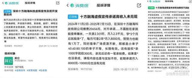 在黑猫投诉平台上,涉及十方融海的投诉有超过3000条,主要集中在 “虚假承诺”“诱导消费”“退费难”。