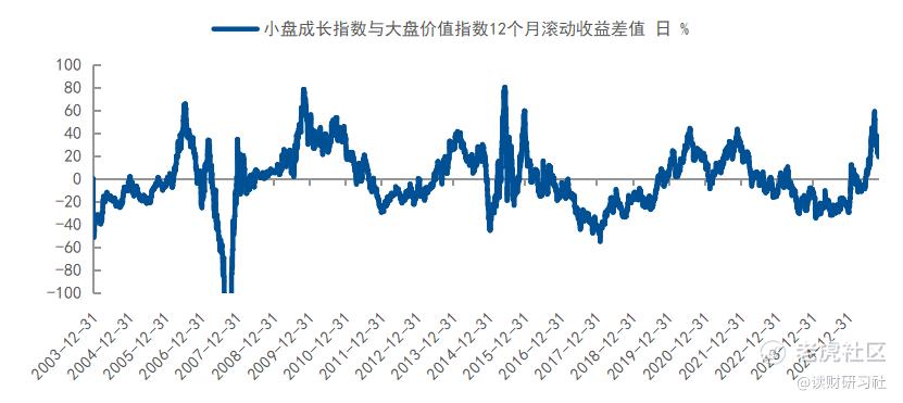 如上图所示,A股市场中小盘成长股与大盘价值股的收益差值呈现出较为显著的均值回归效应,任何风格都不可能持续占优,极端偏离后终将回归常态。