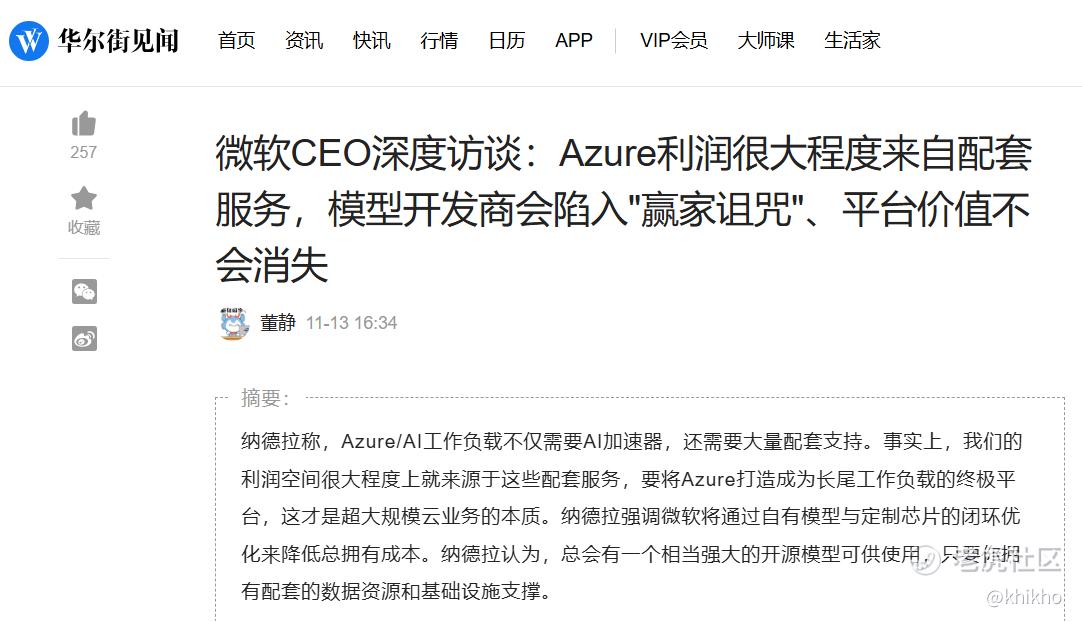 11月13日,Dwarkesh Patel播客发布与微软CEO纳德拉(Satya Nadella)的最新深度访谈, 他们探讨了不少大家都在关注的重点话题,例如微软AI战略,自研芯片,Azure云业务等等,他们还谈到了微软和OpenAI的核心差异,这是一个非常有意思的战略分歧问题,我们几乎可以说这已经涉及到 AI生态的护城河本质。非常值得一看。[得意]
