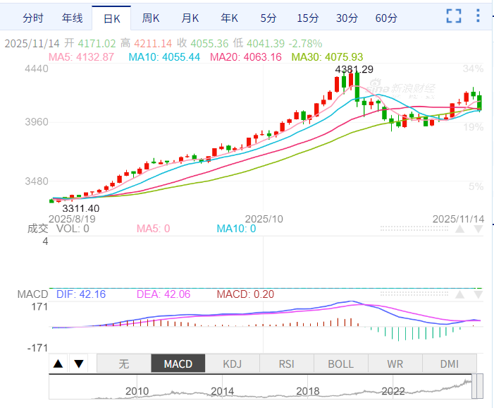 现货黄金跌至4050美元的低位,日内跌幅达3%。由于政府重启后sell the news、股市下跌、美联储鹰派表态等,黄金从4200美元上方回落,可能又要考验4000甚至更低位的支撑。