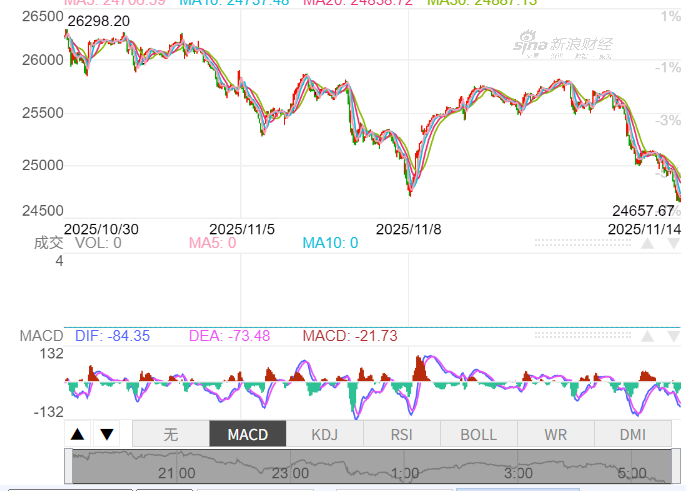 昨日美股三大指数再次承压,纳指跌超2%,今日美股盘前再次下行,纳指期货跌幅一度达1.7%,跌穿上周五低位。市场认为,由于openAI夸大收入的传闻发酵,日本存储公司铠侠和迪士尼的业绩不及预期,以及经济数据持续走软,AI和衰退担忧双双升温,股市在强劲的三季度后在本应该最强的时候还债。