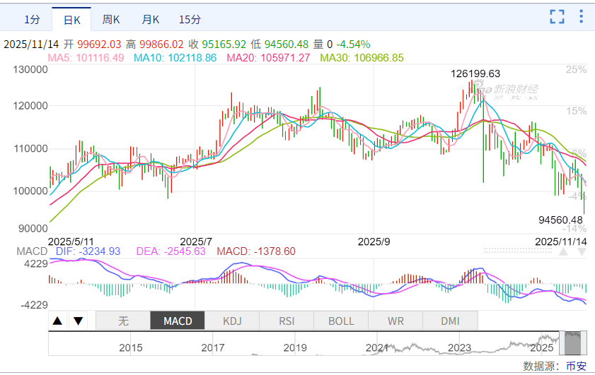 比特币一度下跌超过6%,跌至半年以来新低。据交易所数据,截至北京时间八点,有超过11.5亿美元,或82亿人民币的合约爆仓,人数超过20万人。之前,尽管政府开门释放流动性改善预期,但比特币成为了美股和黄金的血包,在美股开盘后回落,和黄金一样,但一泻千里而非像黄金那样先下跌再反弹。