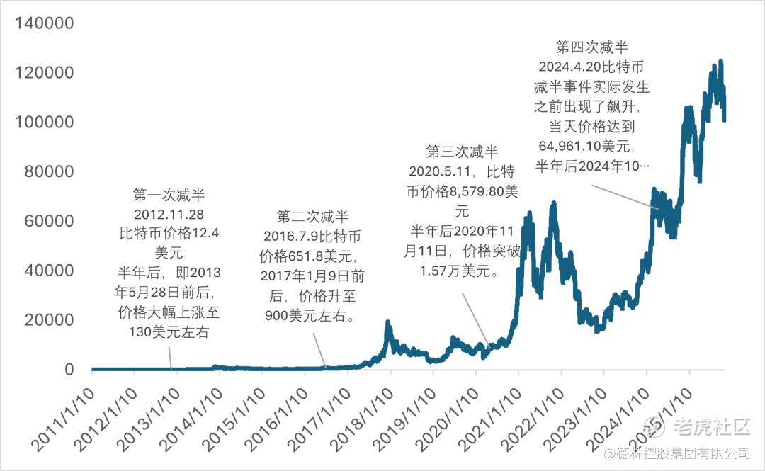 第四次减半发生在2024年4月20日,当天比特币价格达到63,799美元,一年后的2025年5月20日,价格接近11万美元。下一次比特币减半预计会在2028年4月17日,我们认为,在此之前比特币可能会突破20万美元。