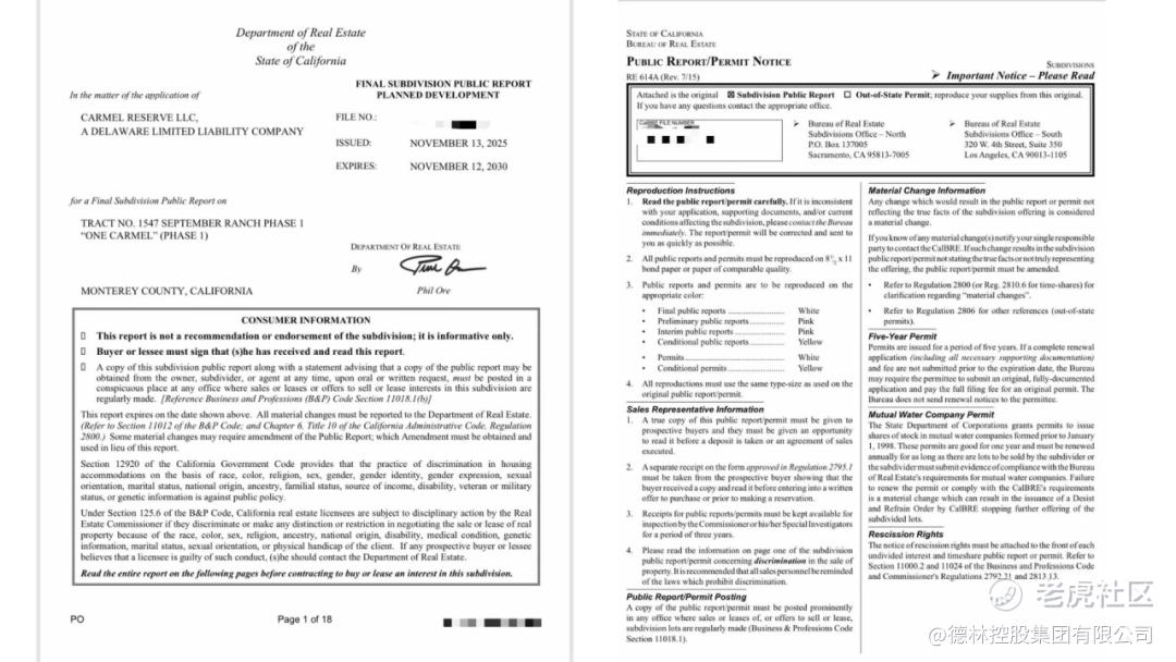 Obtaining California’s real estate sales white paper is widely regarded as a highly challenging milestone. The project must undergo comprehensive review covering land use planning, infrastructure construction, community governance structure, and funding supervision systems, and must satisfy more than 300 government approval conditions. Throughout the entire process, the developer is required to complete all infrastructure — including roads, water, electricity, and telecommunications — in advance; establish a Homeowners Association (HOA) with fully compliant legal documentation; and provide substantial completion bonds to ensure that future public facilities are delivered with required quality and on schedule. The issuance of this white paper signifies that the project has completed the government’s full review of land planning, infrastructure, homeowner protection mechanisms, and fund supervision systems. It also represents the California Real Estate Department’s recognition of ONE Carmel’s extensive preparatory work and provides future homeowners with solid regulatory assurance.