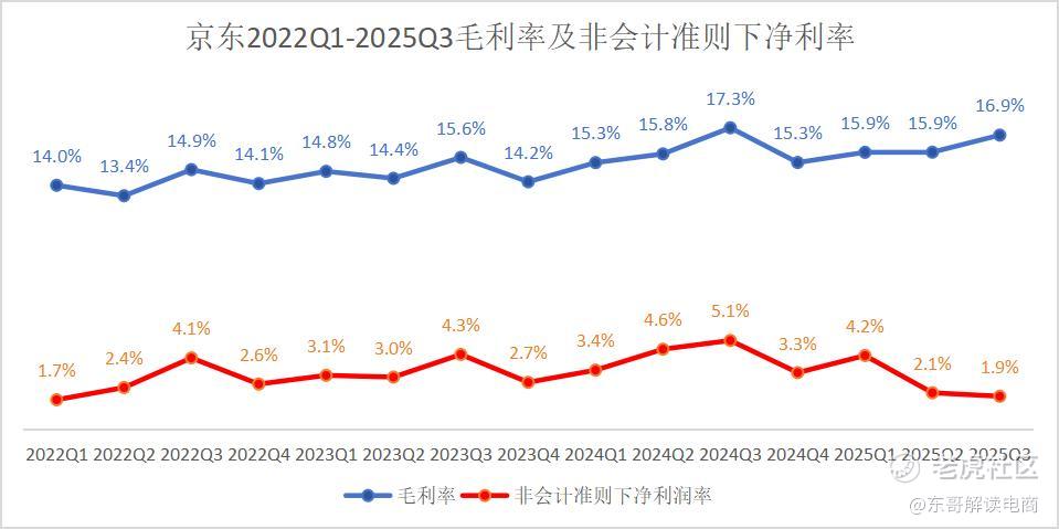 所以可以看到京东零售收入同比增长11.4%,板块的经营利润率5.9%,明显提高,去年同期为5.2%。