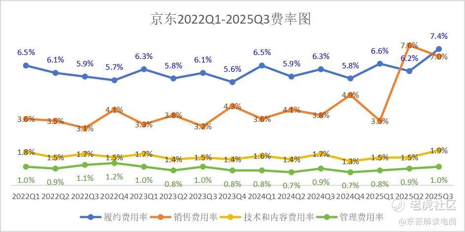 在Q3也可以看到京东正在克制自己的营销支出,环比下,营销费用率正在缩减。