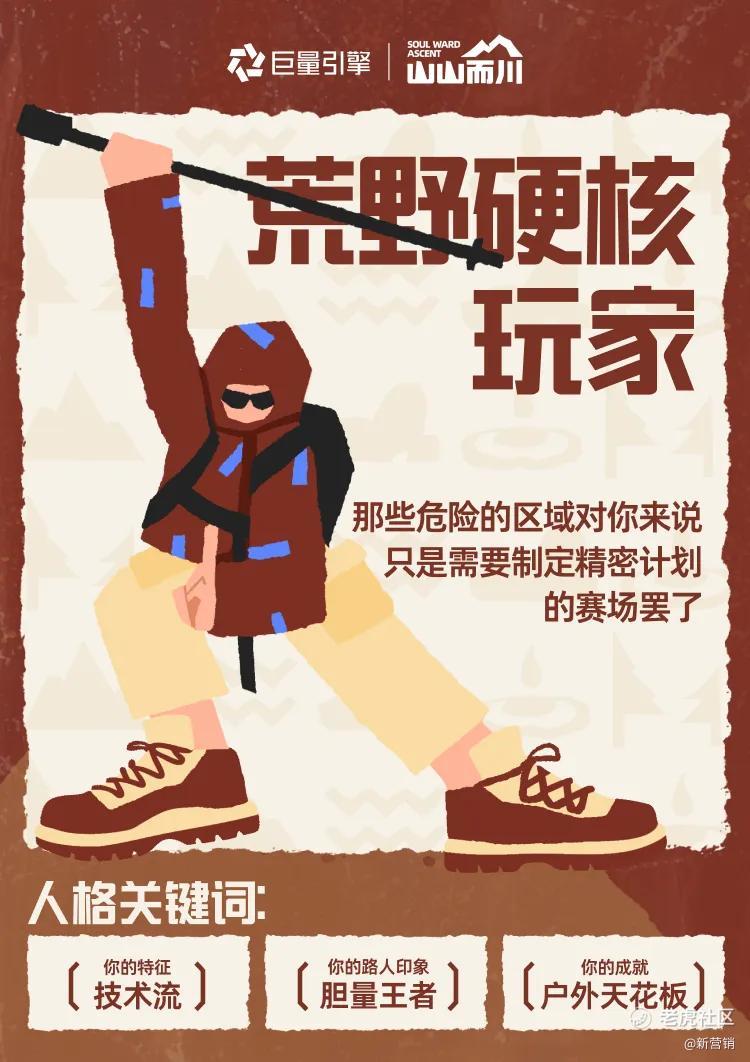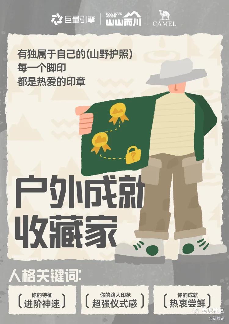 从“五大山野趋势”到“五大户外人格”,「山山而川」IP首先通过“划圈子”的方式唤起户外核心圈层的注意力,并借助平台影响力树立趋势引领的姿态,奠定圈层信任基础,从而激活核心圈层,让他们率先玩起来。