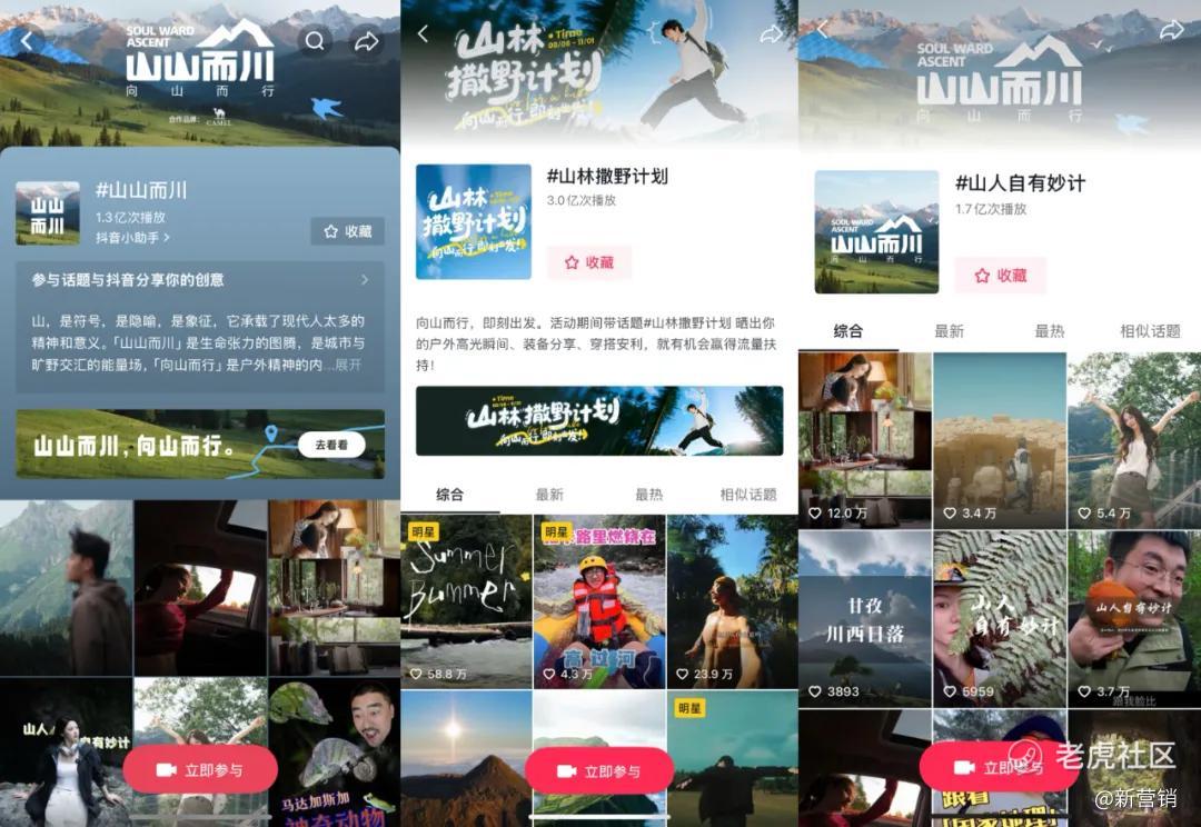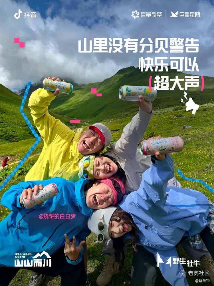 可以看到,巨量引擎充分发挥抖音强大的趋势造风能力,以户外趋势发布激活核心圈层,并通过热点话题运营和多方力量联动,引领起一阵“向山而行”的全民热度风向,为合作品牌提供了亿级曝光场,成功实现量变破圈,也为后续的进一步扩圈爆发埋下伏笔。