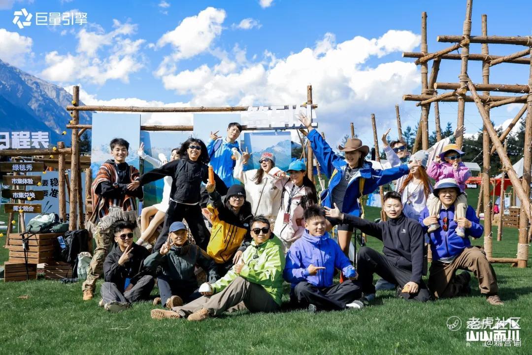 户外品牌真正的舞台当然还得在大山里。作为「山山而川」IP的重头戏,巨量引擎联合丽江文旅在玉龙雪山脚下举办了一场「山山而川·山人行」户外盛典,聚集50位户外达人,将线上的趋势、话题以及品牌产品全部还原于真实户外场景中。