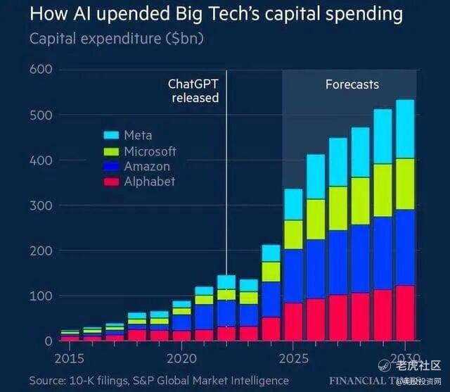数据是最直接的证明:过去一年,微软、谷歌、亚马逊、Meta这四大核心客户,总计投入了惊人的2670亿美元。而这仅仅是序幕,今年,他们的总资本支出预计将飙升至约3683亿美元,环比增幅高达38%。