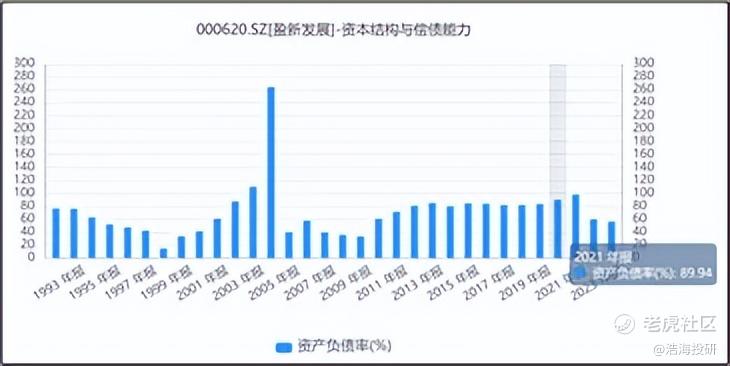 房地产下行和文旅陷危机的双重打击下,2020-2022年间公司连续三年亏损,巨额负债成为公司的沉重包袱。数据来看,2021年开始公司的资产负债率已接近90%,2022年盈新的资产负债率高达97.85%,公司面临退市的风险。
