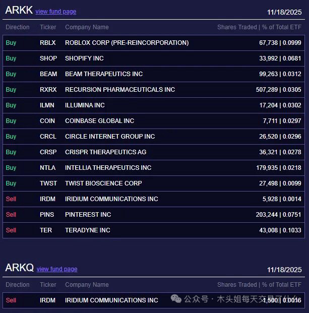 得益于昨晚的行情,木头姐继续开启买买买的节奏!
