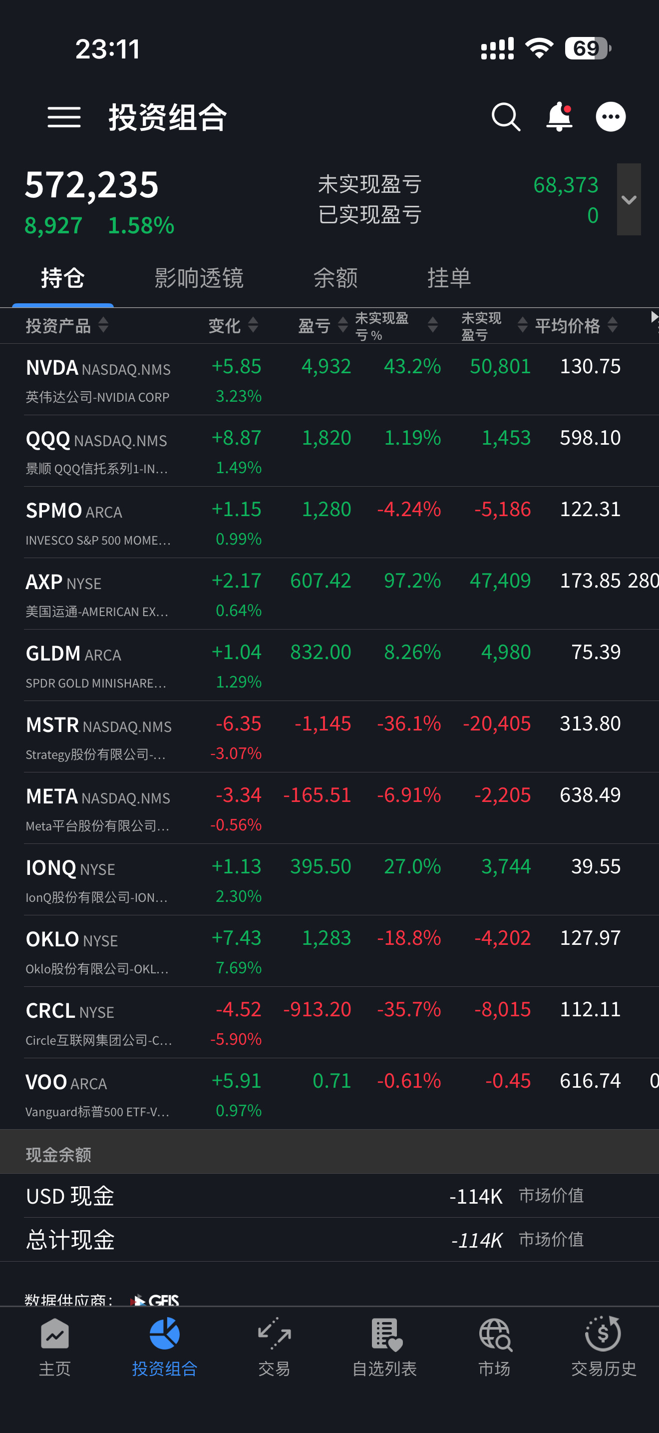 盘前加仓100股nvda。nvda从高点回撤了15%,娜娜回撤7%,丧彪回撤5%,基本到了我的第一个心理加层位置;今天盘后又是nvda财报,目前远期市盈率是32(盈透显示数据),也有新闻说是29,拉长看这个远期市盈率不贵,因此无论盘后涨跌,影响都不大,小加一点仓位。