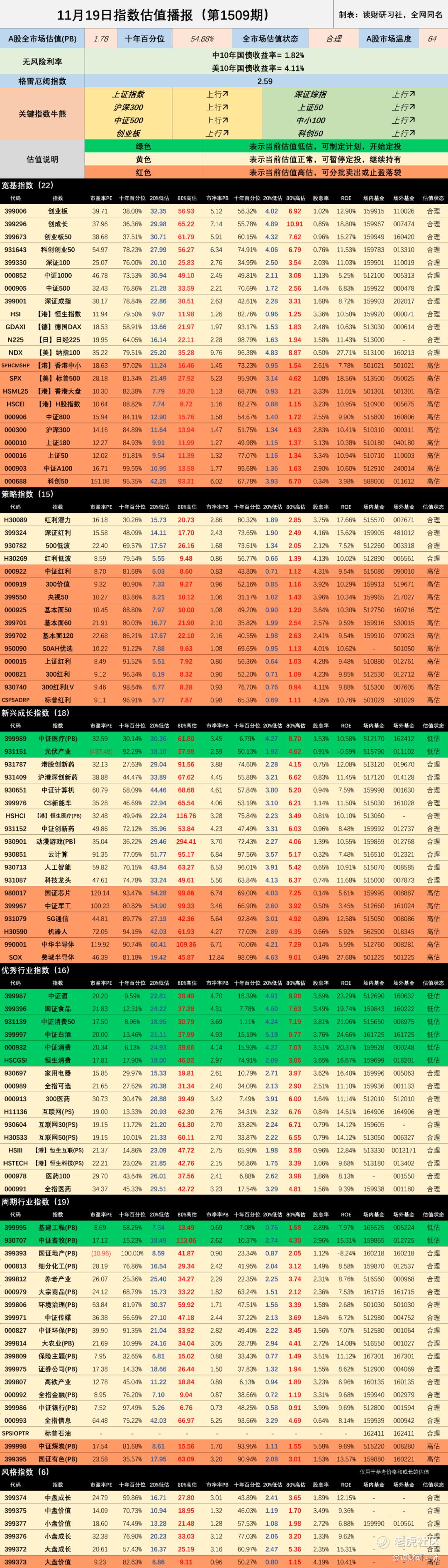 1、11月19日指数估值播报(1509期)