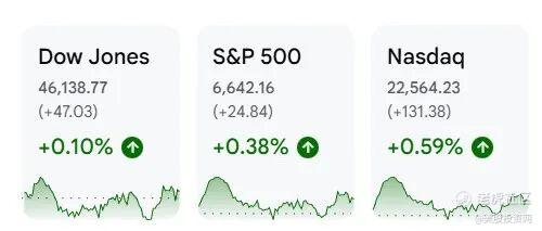 纳指收涨0.59%,成功止住了四连跌的势头;标普500指数收涨0.38%;道指微张0.1%。
