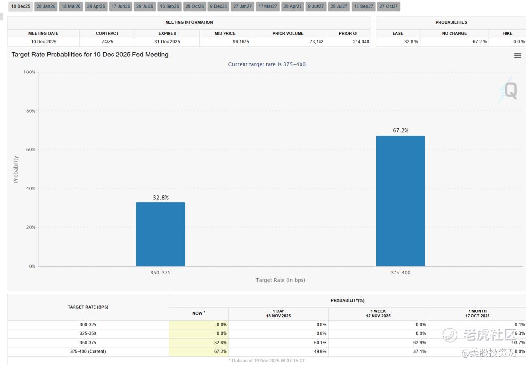 受此影响,12月降息的概率迅速下跌至32.8%,市场涨幅有所收窄。