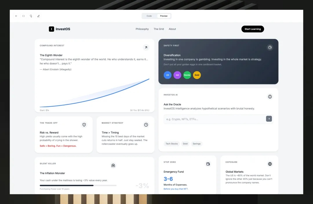 Gemini 3 在Design Arena的统治性表现不是偶然。开发者们发现,Gemini 3不仅能写出功能正确的代码,更重要的是,它能够理解审美。在很多设计中,我们都能看到响应式设计自然流畅,色彩搭配符合现代审美,动画效果恰到好处,无障碍性考虑周全。