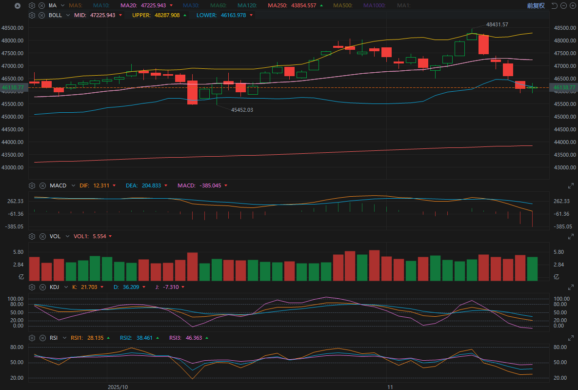 市场在英伟达利好与货币政策不确定性的拉扯下显示出短期回稳的迹象,但从技术面看标普与纳指仍位于各自50日均线下方,短期动能未能彻底恢复。后续能否确认多头回归,取决于指数能否突破并守住50日均线以及英伟达等关键个股后续指引与宏观数据尤其就业与通胀数据的配合。
