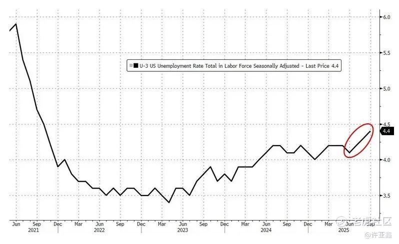 同时,美国9月失业率4.4%,高于预期和前值4.3%,为2021年10月以来最高。